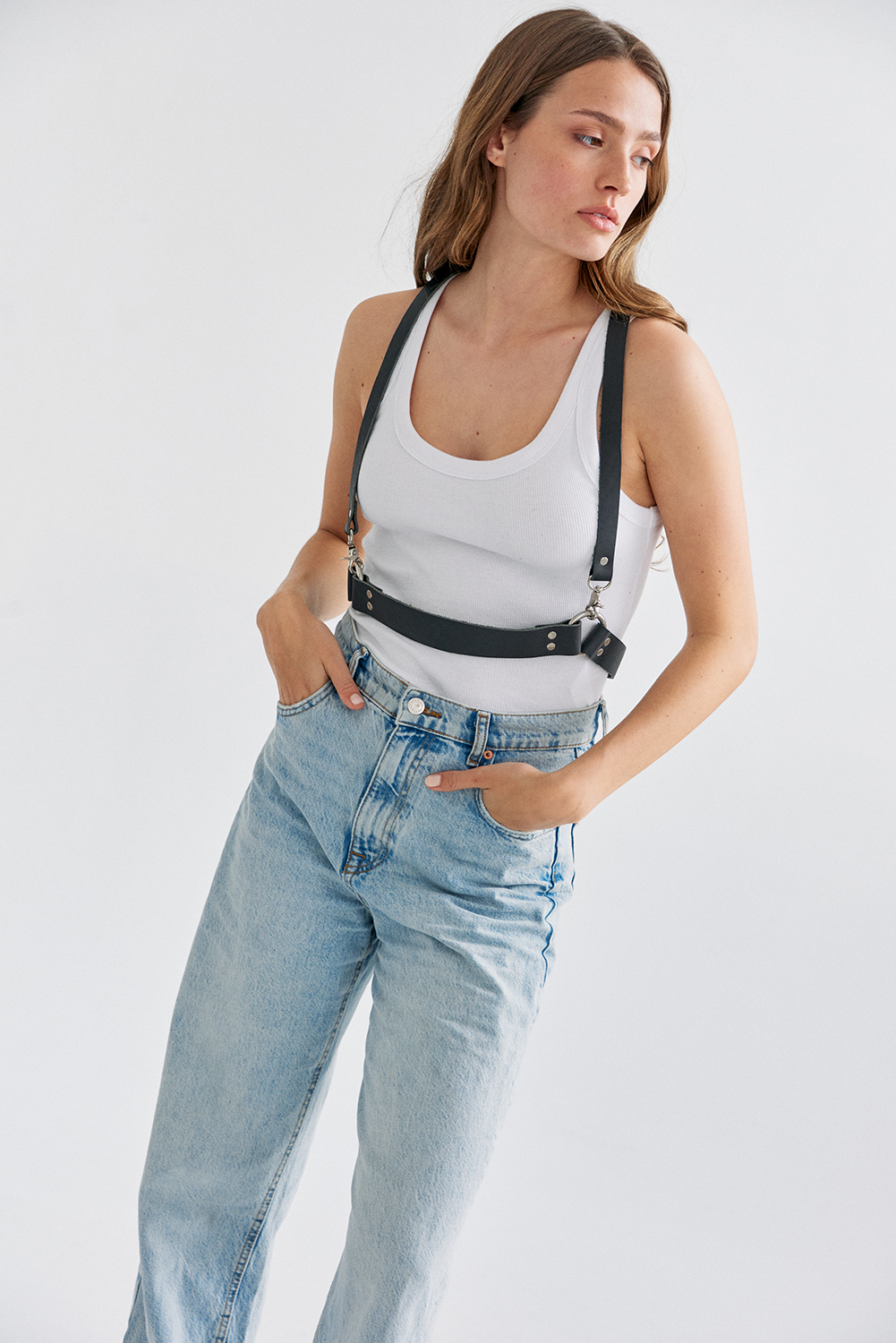 Recto o cruzado, SONIA es reversible y el arnés para usar en cualquier momento. Es liviano y cómodo. Esta hecho 100% en cuero flor, el cual lo hace eterno.